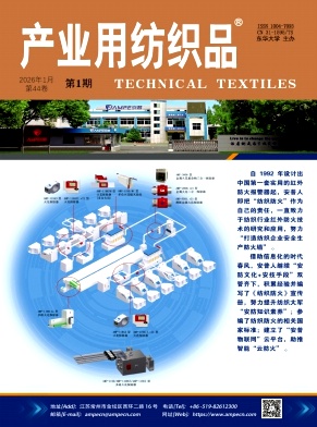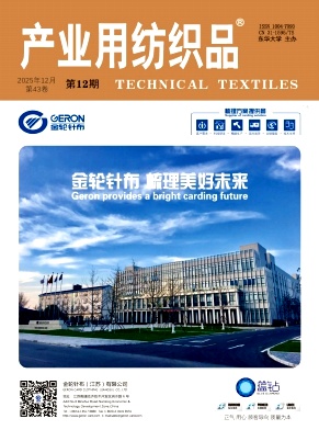 洪常青;为使复合医用弹性非织造材料的防护性与舒适性达成平衡,先以涤纶长丝与短纤为原料制备混纺纱,探究最佳纤维原料配比,然后利用不同的水刺压力梯度制备弹性非织造材料,并测试其布面效果,以及拉伸性能、弯曲性能、弹性回复性能、透气性能和溢流性能等。结果表明:以质量分数为80%的涤纶长丝(1.67 dtex)和20%的涤纶短纤(38 mm, 2.22 dtex)制备的混纺纱,断裂强力(485 N)与弹性回复率(92.5%)表现最佳;以此比例混合加工纤维网层,在经过2.0、5.0、4.0、6.0、6.0、6.0 MPa的压力梯度水刺,以及115℃的烘干后,所得水刺非织造材料具有优异的力学性能,其纵向和横向的断裂强力分别达88.10 N和80.90 N、断裂强度为1.77 N/mm和1.62 N/mm、抗弯刚度为47.2 mN/mm和24.1 mN/mm,储水量为4.7 g,溢流量为20.3 g,同时具有良好的弹性回复率(95%)和透气率(1 506 mm/s)。且该水刺非织造材料经银系抗菌剂整理后,其上大肠埃希菌最可能数(MPN)低于3.0 g-1,金黄色葡萄球菌未检出,抗菌性能优异。